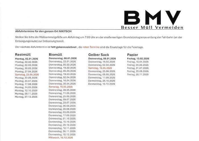Termine Müllabfuhr 2026